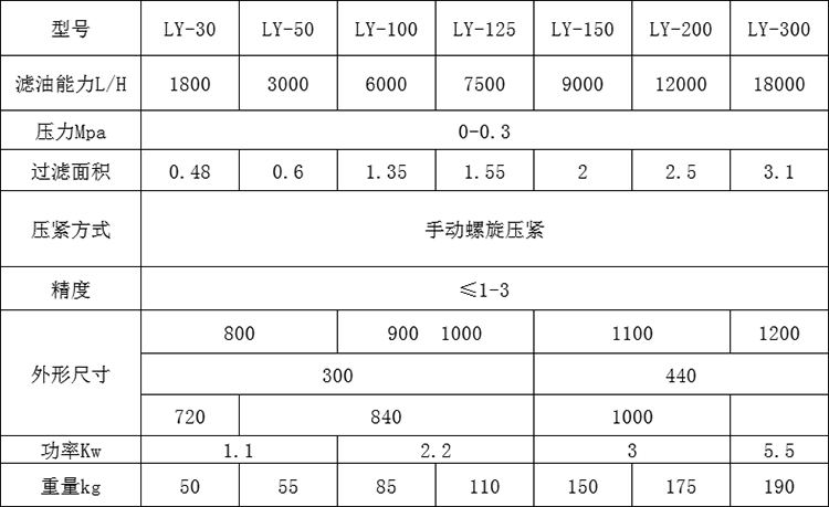 二、LY板框?yàn)V油機(jī)的技術(shù)參數(shù):
