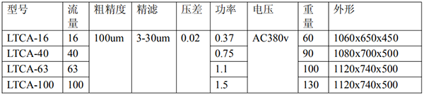 一、LTCA 系列濾油車性能參數(shù):